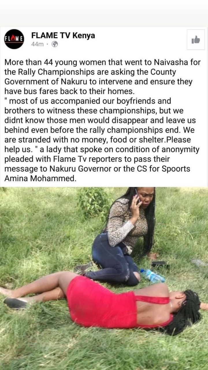 "Most of us accompanied our boyfriends and brothers in Christ to witness these championships, but we didn't know that our boyfriends would disappear and leave us behind...we are stranded with no money, no food or shelter...please help us". Sharon from moiben.