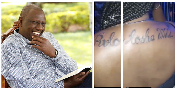 Just as we are pondering on the political strides that DP is making, netizens have been treated with a rare thing after a city woman decided to express her love for Kenya's deputy president William Ruto by tattooing her body with his name.