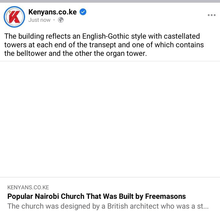 The freemasonry are believed to be great architects and they are behind the world's famous buildings that have stood for centuries now. In the Kenya and Nairobi City to be specific, some of the iconic buildings are the works of the freemasons. For instance Temple Moore, a Freemason in Kenya and a British architect is believed to be the man who created the All Saints Cathedral along Kenyatta Avenue. The church was build in 1917 by the colonial government.