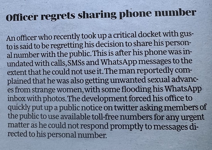 The officer quickly took to Twitter where he posted a notice that the public should use the available toll-free number for any urgent matter as he could not respond promptly to messages directed to his personal number.
