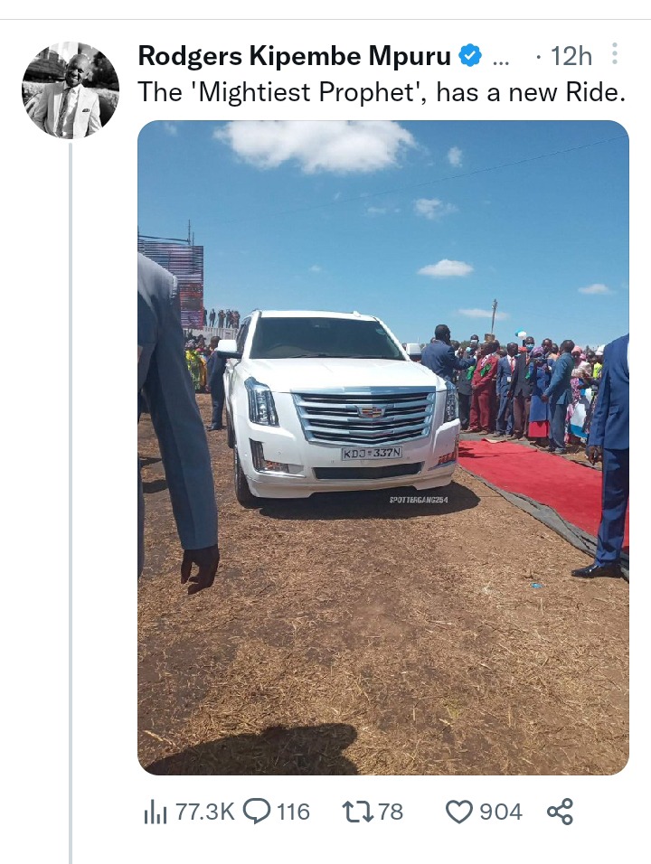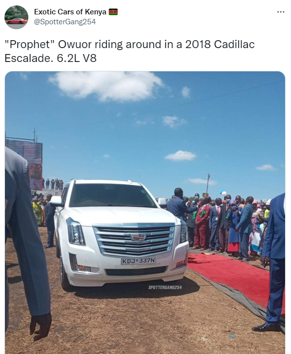 Dr Owuor is also known for his lavish lifestyle ranging from high end vehicles to luxury houses in Nairobi's suburbs. Just the other day, the man of God acquired a sleek Cadillac Escalade machine for himself to help him move around as he spreads the good news to the world. This however attracted mixed reactions from a section of online users who questioned how he would manage to have such a luxury car while most of his followers are languishing in abject poverty.