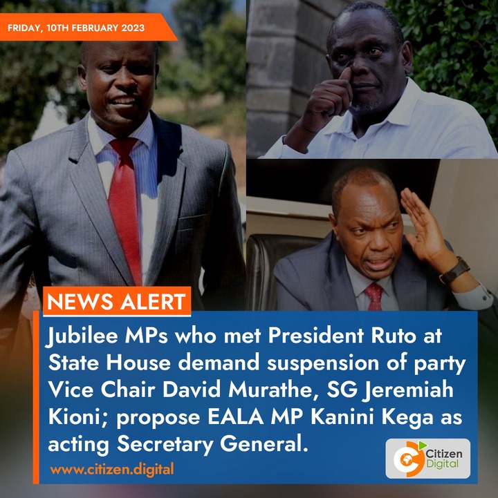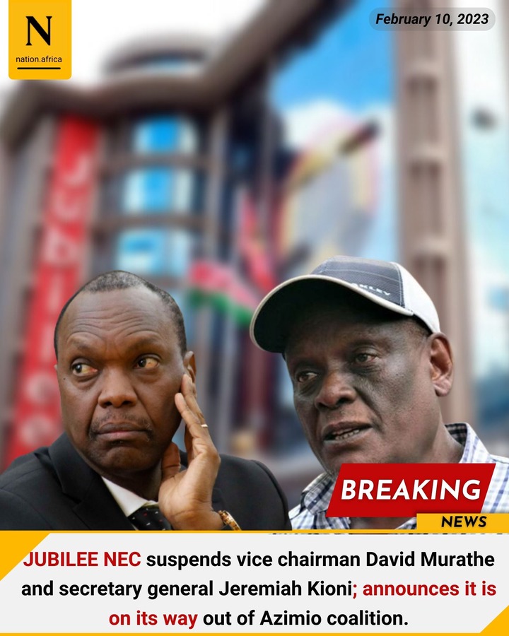 BREAKING NEWS: Jeremiah Kioni & David Murathe Dismissed from Jubilee Party as New Men are Proposed