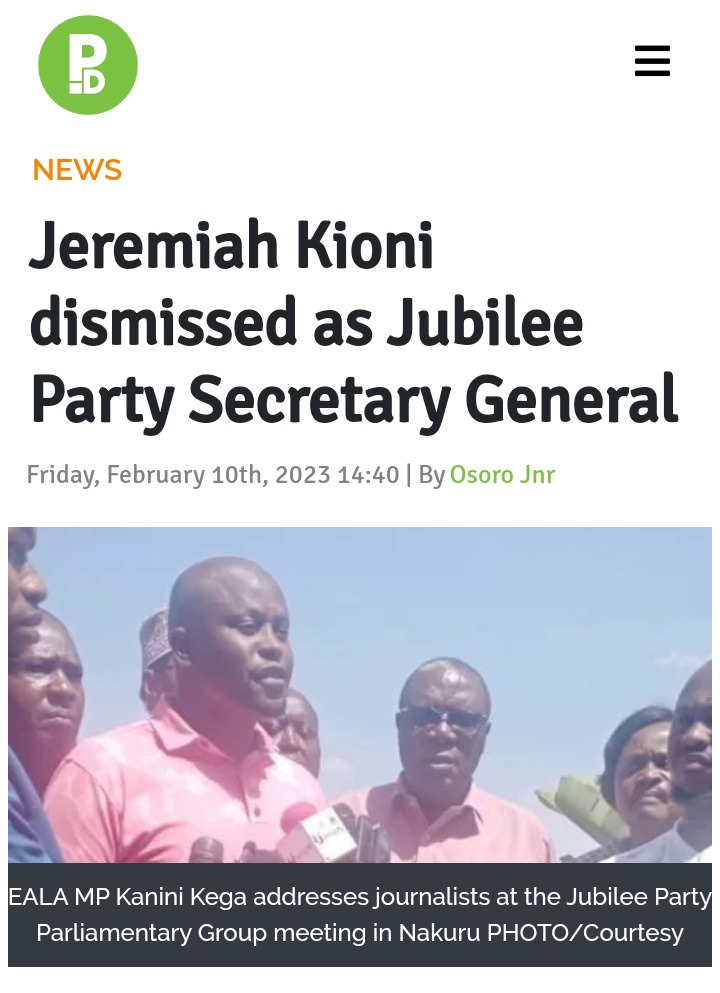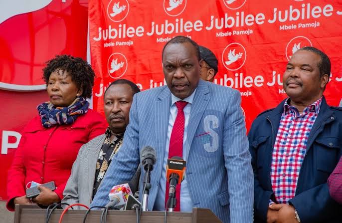 Speaking at the Jubilee Party Parliamentary Group meeting in Nakuru, the party's top brass announced that EALA MP Kanini Kega will take over as the acting Secretary General until a substantive replacement is found to continue running the operations of the party.