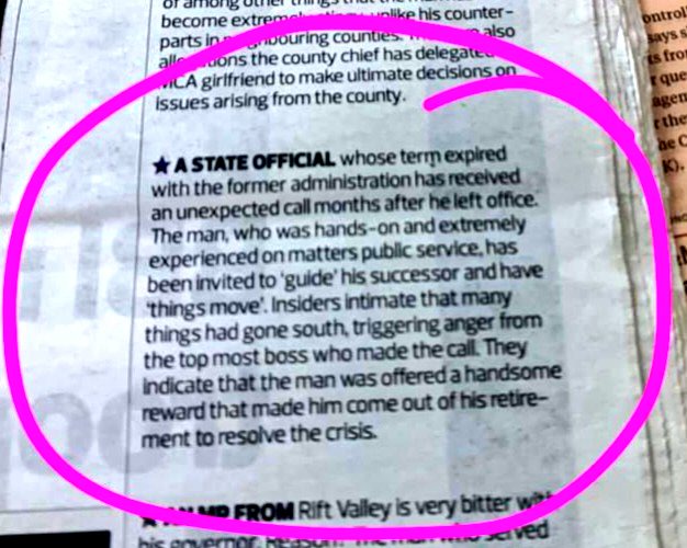 According to a publication by a local publisher, things have been going south , triggering anger from the top boss who made a call to Dr Kinyua asking him back.
