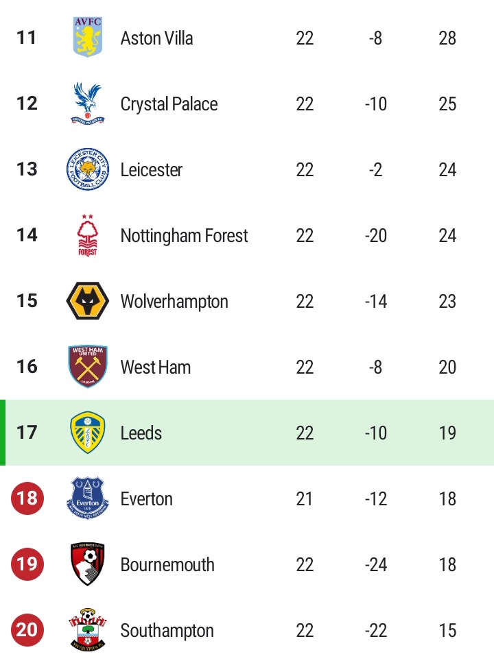 At the bottom, Everton, Bournemouth a d Southampton are struggling in the 18, 19, and 20 position respectfully.