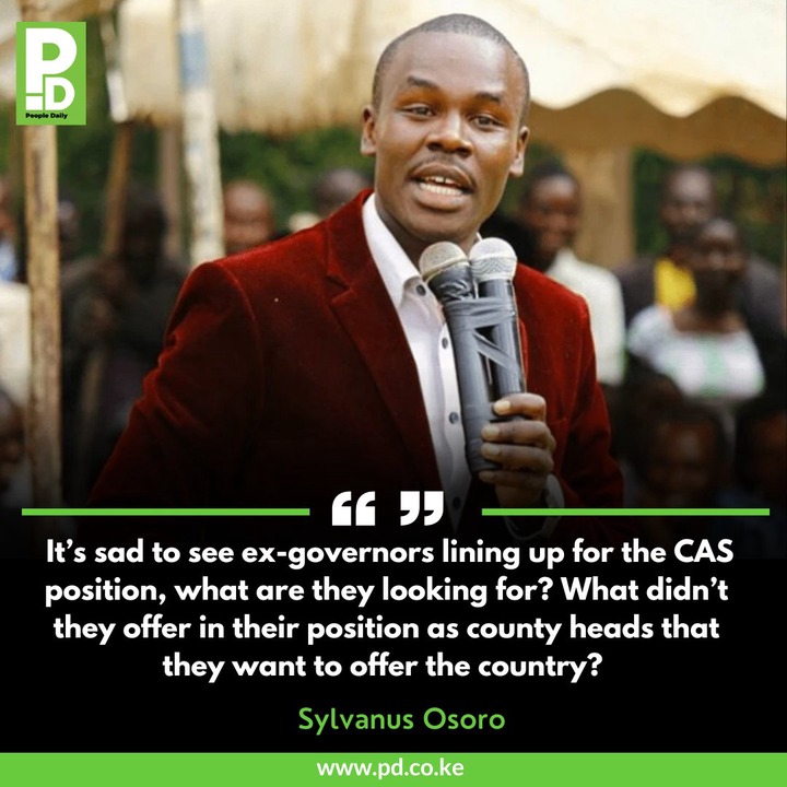 "It’s sad to see ex-governors lining up for the CAS position, what are they looking for? What didn’t they offer in their position as county heads that they want to offer the country?" Majority Whip, Sylvanus Osoro.