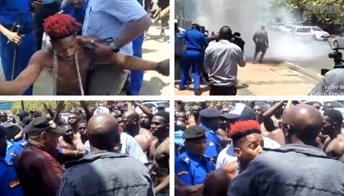 Today, comedian and content creator Eric Omondi lend othe activist and Kenyans to protest the High cost of living. The group blocked the Parliament road and tried to storm Parliament building before they were repelled by police officers manning the establishments.